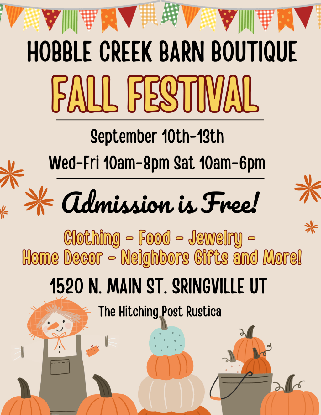 Our Fall Festival Boutique is just around the corner! The dates are September 10th-13th. We will be open Wednesday-Friday 10am-8pm and Saturday 10am-6pm.